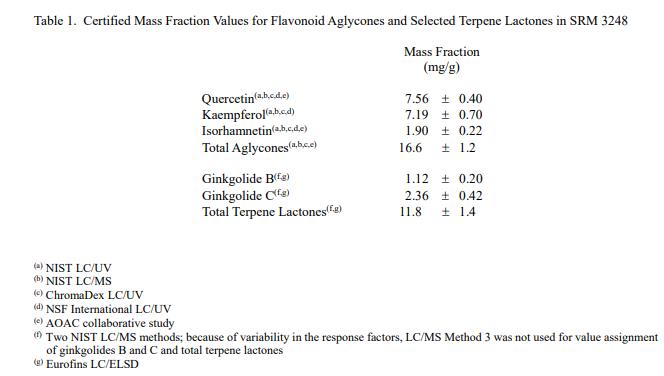 SRM 3248 銀杏片標(biāo)準(zhǔn)品 的開發(fā)是美國國家標(biāo)準(zhǔn)與技術(shù)研究院 (NIST) 之間的合作;美國國立衛(wèi)生研究院 (NIH) 膳食補(bǔ)充劑辦公室 (ODS);以及美國食品藥品監(jiān)督管理局 (FDA)、藥物評(píng)價(jià)和研究中心 (CDER)。